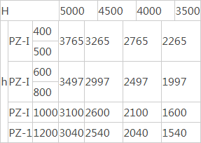 1、水泵房底板標(biāo)高和水倉(或配水巷)入口標(biāo)高之高差H與連接桿長度h值,本設(shè)計(jì)考慮四種情況,如下表所示:(單位:毫米)